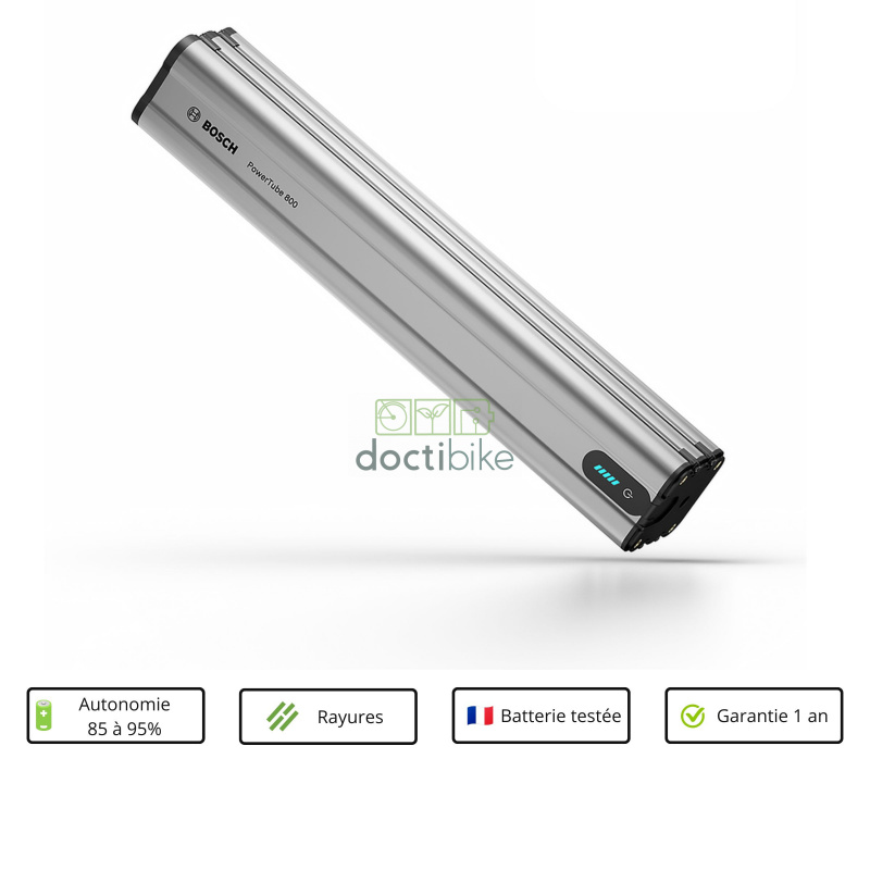 Batterie vélo Bosch PowerTube 500 Wh Horizontal - Reconditionnée grade Argent