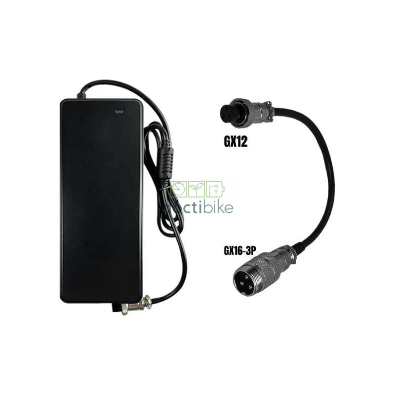 54,6V oplader met GX12 3-pins aansluiting voor elektrische scooter met 48V accu.